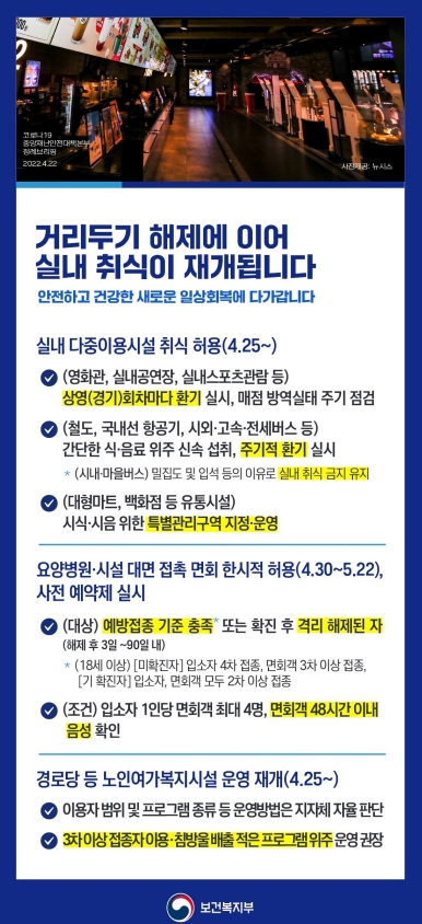 ◆ 실내 다중 이용 시설 취식 허용 (4.25~)