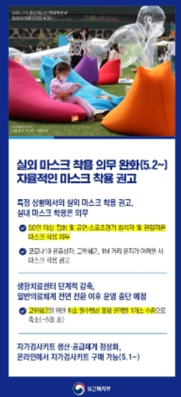 ◆ 특정 상황에서의 실외 마스크 착용 권고, 실내 마스크 착용은 의무