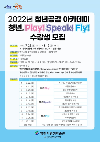 청년공감아카데미는 만 19~39세 영천시민이면 누구나 참여할 수 있고 모집인원은 30명이며 수강료는 10,000원이다.