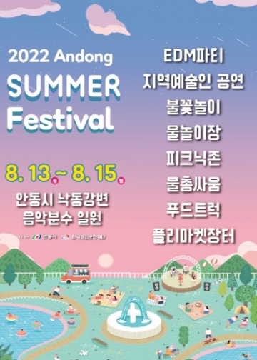 [가람플러스] 안동시가 주최하고 한국정신문화재단이 주관하는 "2022 안동 썸머 페스티벌"이 오는 8월 13일부터 15일까지 사흘간 낙동강변 음악분수 일원에서 개최된다.