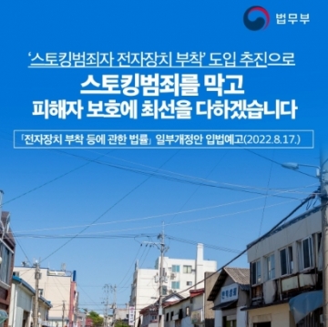 법무부는 현재 살인·성폭력·강도·미성년자 유괴범죄에 대해서만 가능한 전자장치 부착명령을 스토킹 범죄까지 확대하기로 한 '전자 장치 부착 등에 관한 법률' 일부개정 법률안을 입법예고하였습니다.