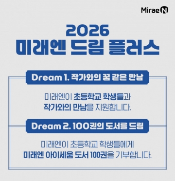 미래엔 강윤구 출판IP사업본부장은 “’미래엔 드림 플러스’를 통해 더 많은 아이들이 책과 가까워지고, 독서를 통해 사고의 폭을 넓히는 계기가 되길 바란다”며 “앞으로도 교육과 출판의 전문성을 기반으로 다양한 독서 문화 확산 프로그램을 지속해 나갈 것”이라고 말했다.