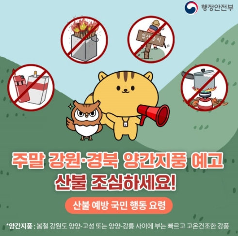 *양간지풍 : 봄철 강원도 양양-고성 도는 양양-강릉 사이에 부는 빠르고 고온 건조한 강풍